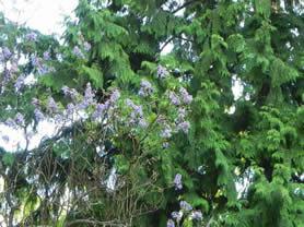 However, it is grown for its fragrant bright purple blossoms which resemble foxglove flowers. The flowers are 5 cms long and are borne in large upright panicles. They appear as the leaves emerge and fade to give way to clusters of large brown seed pods.