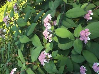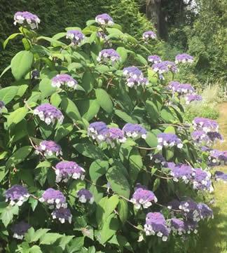 Flower colour: | The violet blue, flattened fertile flowers are surrounded by white, sometimes pink to light purple, sterile flowers. The colour of the flowers are not affected by soil pH as are other hydrangeas. |
