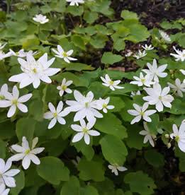 This is an excellent early spring wildflower for woodland, native plant or wild gardens. Anemonella thalictroides can be grown in shaded areas and is a native of Missouri. It grows up to 6 inches tall and features white or pinkish flowers with 5 to 10 petal-like sepals and numerous leaves, but each flower has it own stem. The basal leaves have 10-30cm long petioles. Leaflets are widely rounded in shape and are three lobed. The flowers have short stems that hold the fully opened flowers above the foliage. Showy rounded flowers have many yellow stamens in the middle and a cup of white or pinkish sepals.